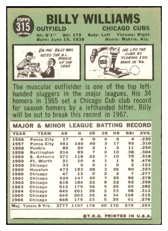 1967 Topps Baseball #315 Billy Williams Cubs EX-MT 530326