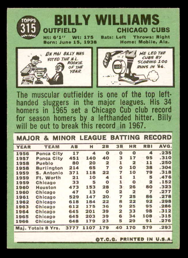 1967 Topps Baseball #315 Billy Williams Cubs NR-MT 538942