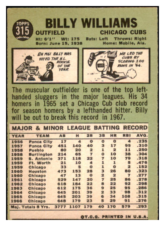 1967 Topps Baseball #315 Billy Williams Cubs VG-EX 527322