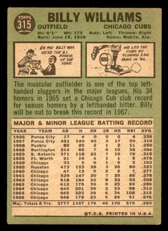 1967 Topps Baseball #315 Billy Williams Cubs VG-EX 539804
