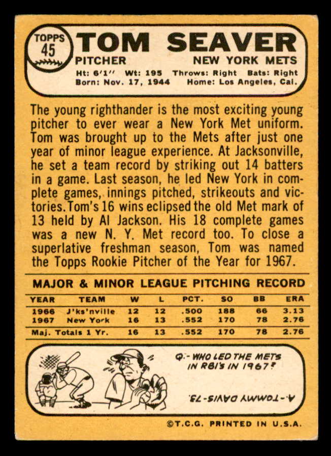 1968 Topps Baseball #045 Tom Seaver Mets VG-EX 539256