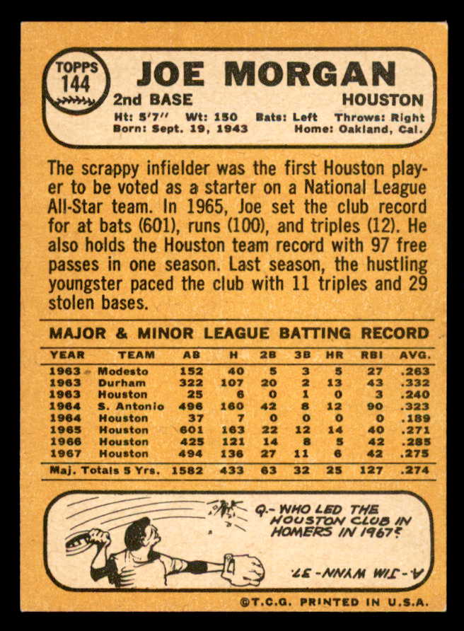 1968 Topps Baseball #144 Joe Morgan Astros EX-MT 541034