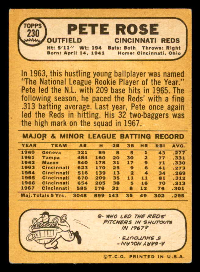 1968 Topps Baseball #230 Pete Rose Reds VG 539181