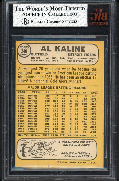 1968 Topps Baseball #240 Al Kaline Tigers BVG 5.5 EX+ 538282