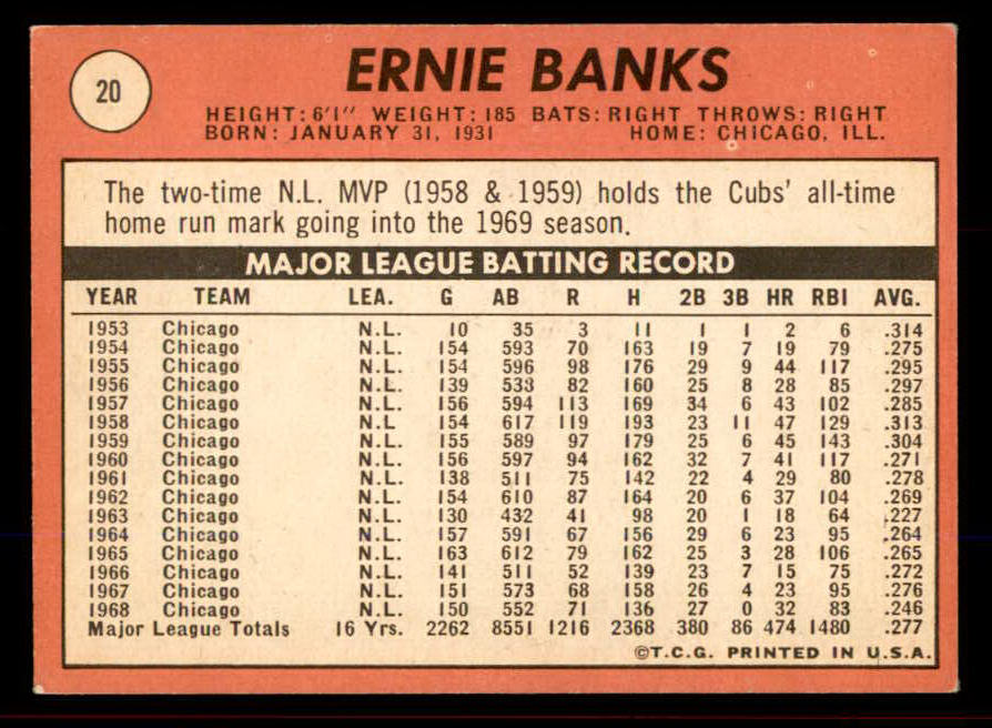 1969 Topps Baseball #020 Ernie Banks Cubs EX-MT 545427
