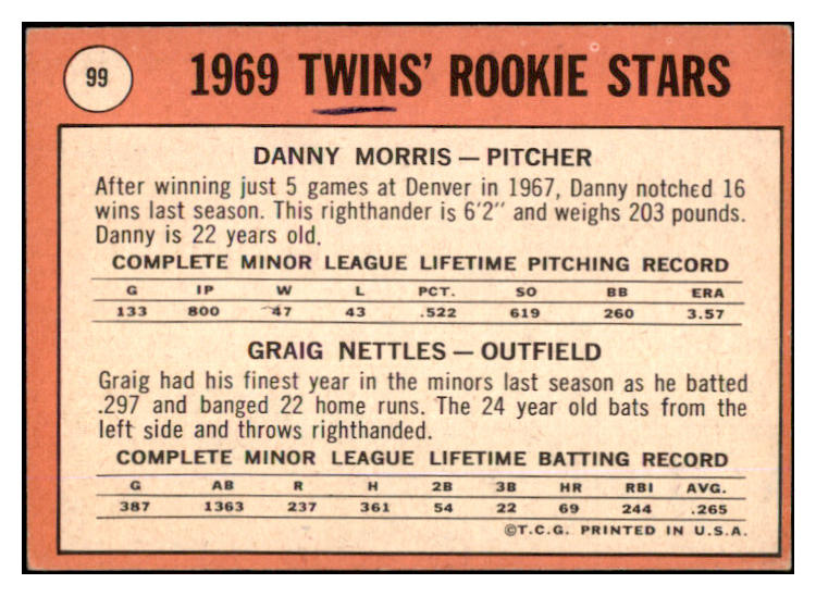 1969 Topps Baseball #099 Graig Nettles Twins FR-GD 530477