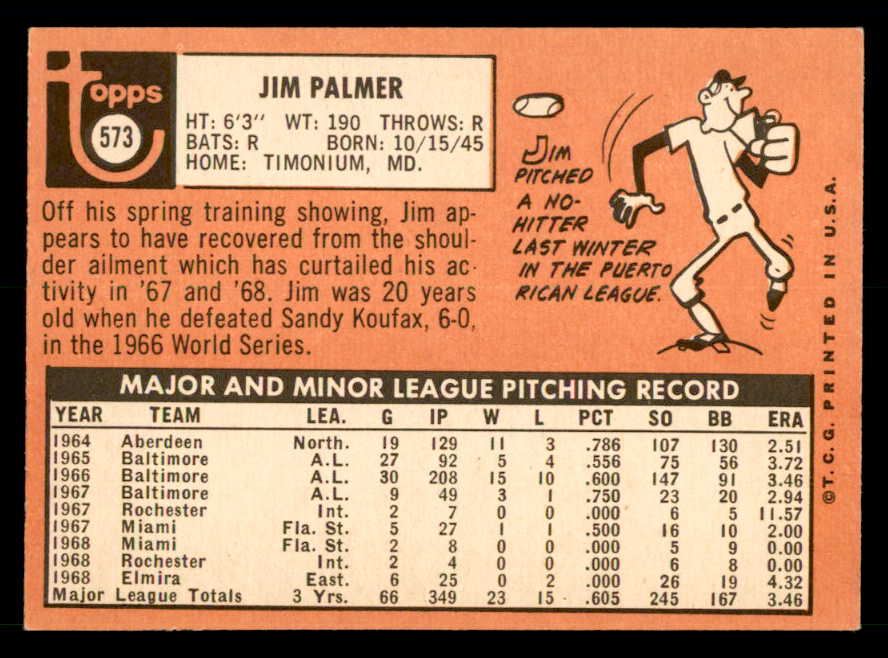 1969 Topps Baseball #573 Jim Palmer Orioles EX-MT 539869