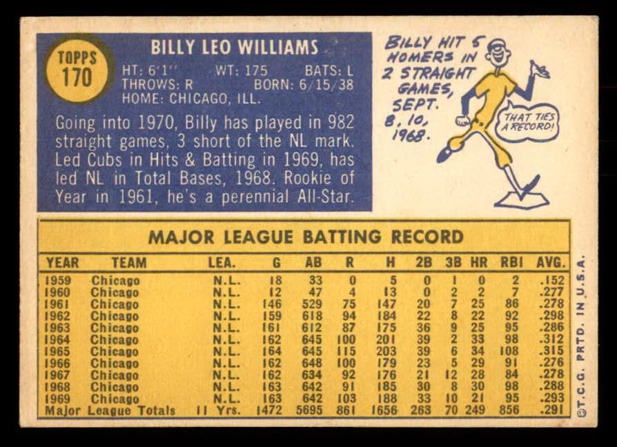 1970 Topps Baseball #170 Billy Williams Cubs EX+/EX-MT 541411
