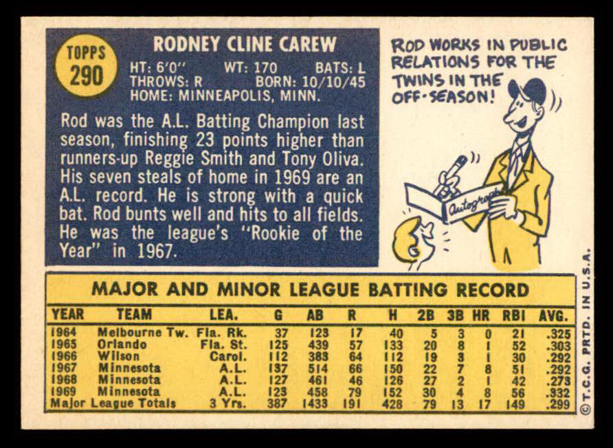 1970 Topps Baseball #290 Rod Carew Twins EX+/EX-MT 541467