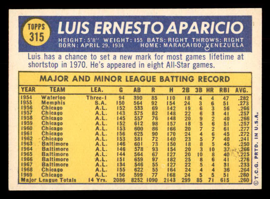 1970 Topps Baseball #315 Luis Aparicio White Sox NR-MT 541401