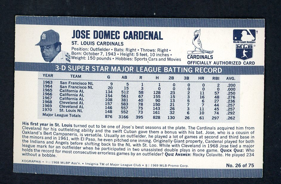 1971 Kelloggs Baseball #026 Jose Cardenal Cardinals EX-MT Hits 828 543289