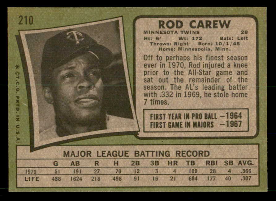 1971 Topps Baseball #210 Rod Carew Twins EX-MT 540005
