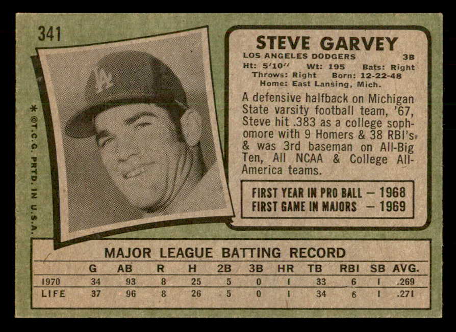 1971 Topps Baseball #341 Steve Garvey Dodgers EX+/EX-MT 541680