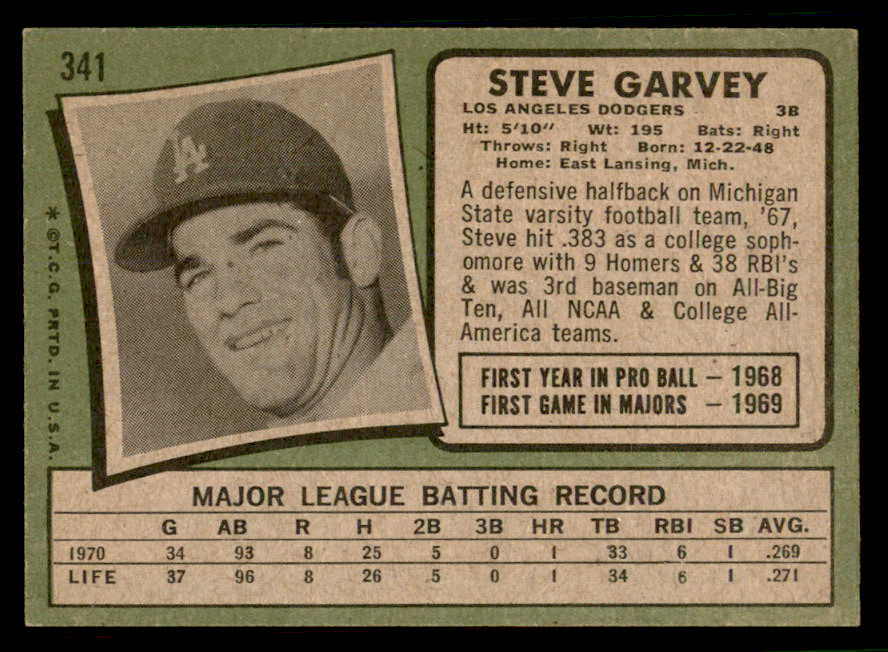 1971 Topps Baseball #341 Steve Garvey Dodgers EX-MT 542409