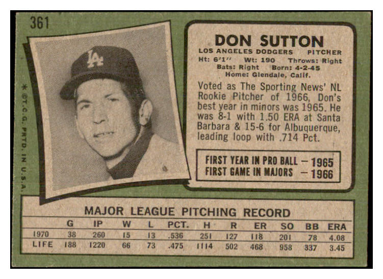 1971 Topps Baseball #361 Don Sutton Dodgers EX-MT 534239