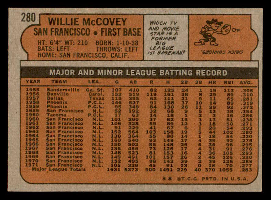 1972 Topps Baseball #280 Willie McCovey Giants EX-MT 544671