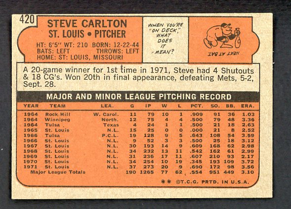 1972 Topps Baseball #420 Steve Carlton Cardinals EX-MT 542119