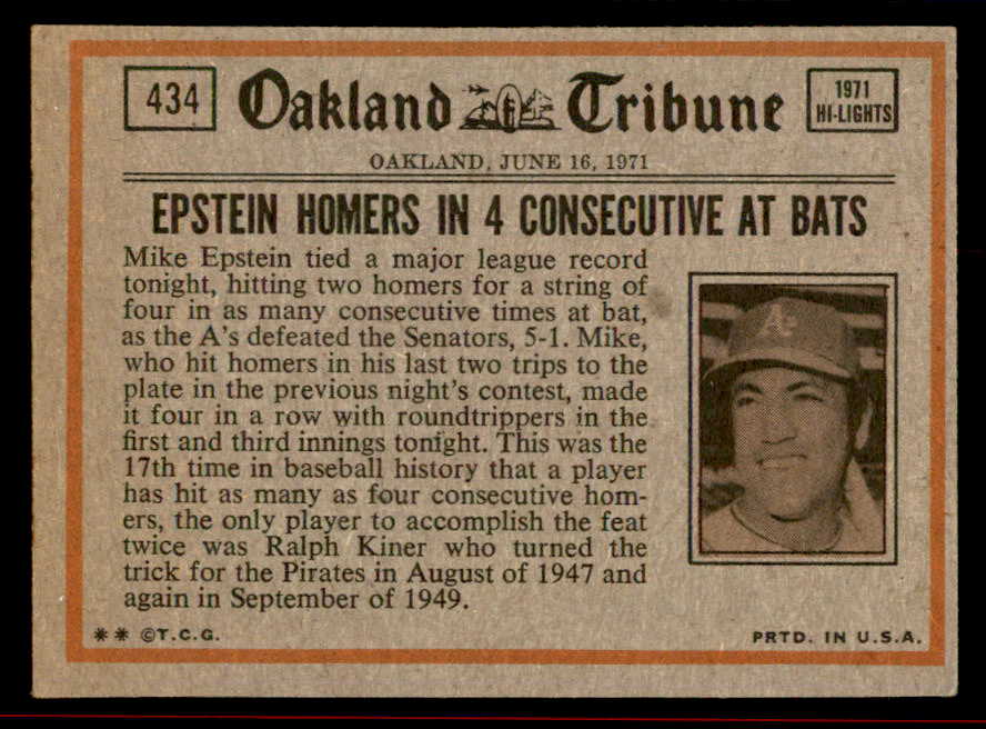 1972 Topps Baseball #434 Johnny Bench IA Reds EX 542124