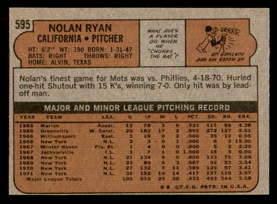 1972 Topps Baseball #595 Nolan Ryan Angels EX-MT 541504