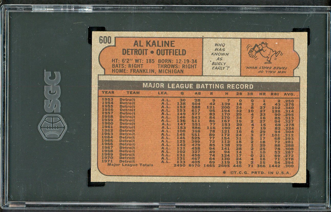1972 Topps Baseball #600 Al Kaline Tigers SGC 7.5 NM+ 544786