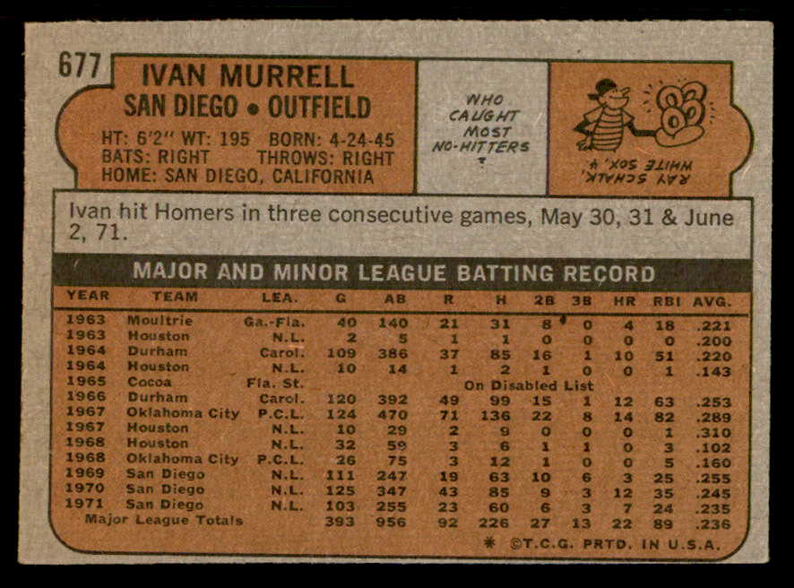 1972 Topps Baseball #677 Ivan Murrell Padres VG-EX 543159