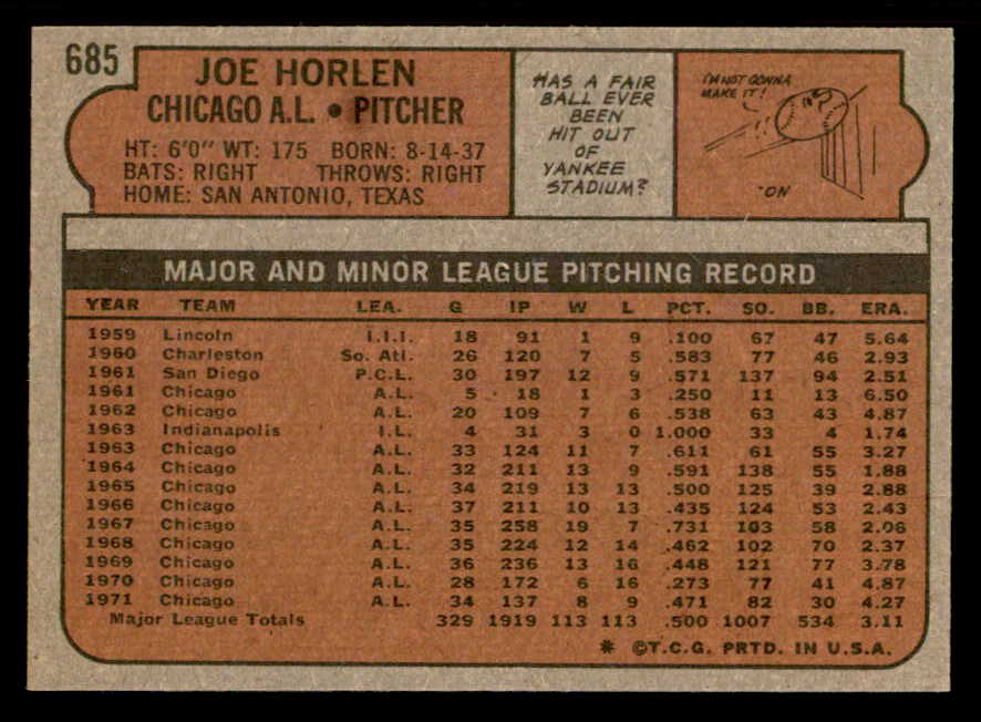 1972 Topps Baseball #685 Joe Horlen White Sox EX-MT 543139
