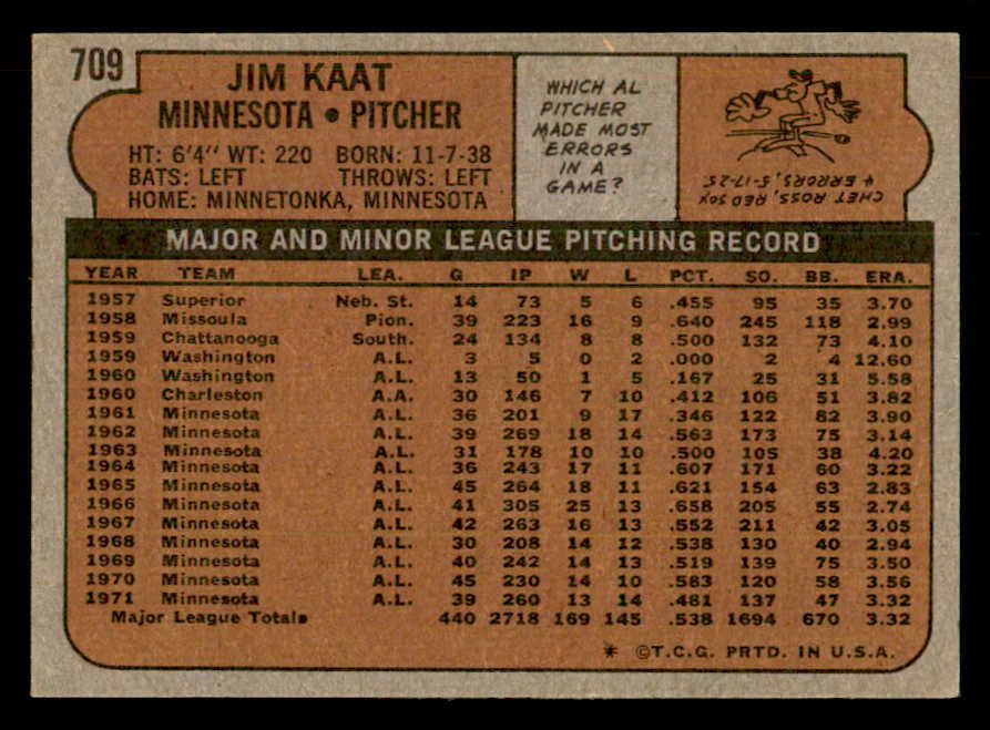 1972 Topps Baseball #709 Jim Kaat Twins EX+/EX-MT 541485
