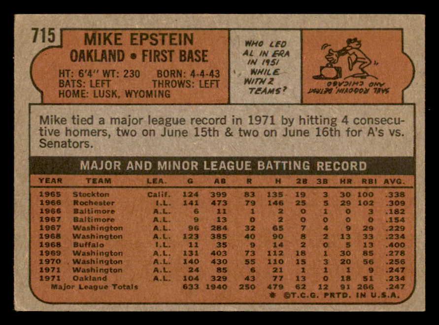 1972 Topps Baseball #715 Mike Epstein A's VG-EX 543168