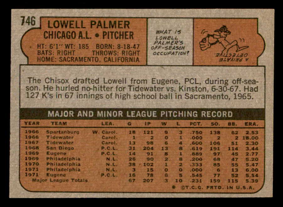 1972 Topps Baseball #746 Lowell Palmer White Sox NR-MT 543120