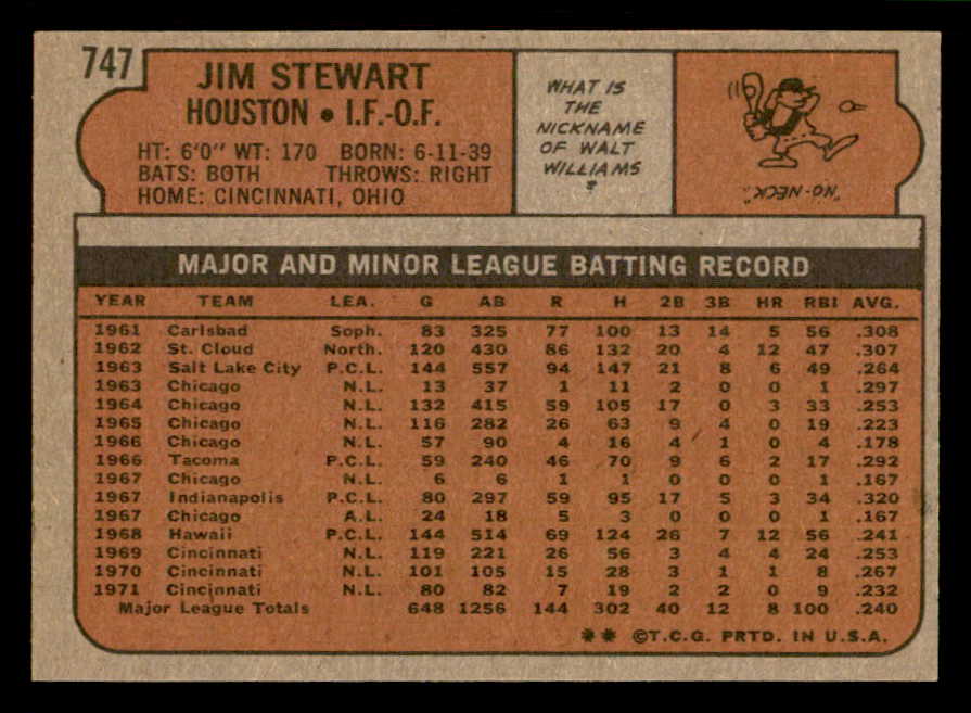1972 Topps Baseball #747 Jim Stewart Astros NR-MT 543121