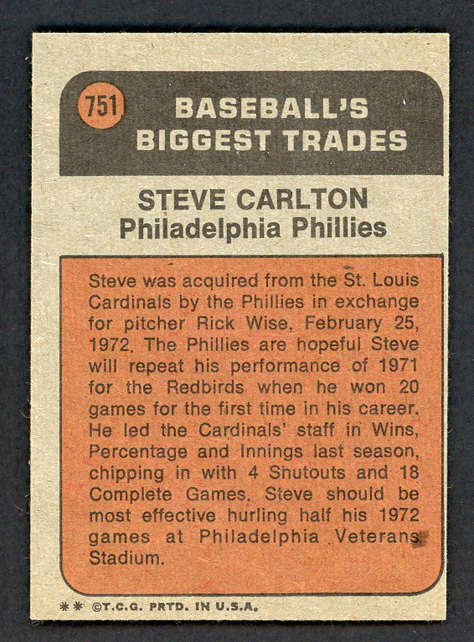 1972 Topps Baseball #751 Steve Carlton TR Phillies EX-MT 544667