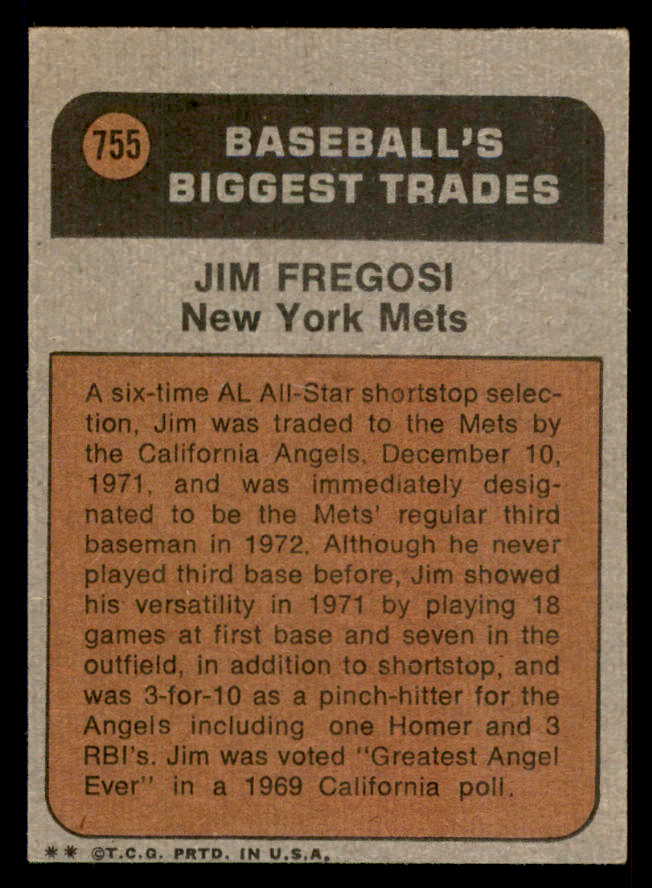 1972 Topps Baseball #755 Jim Fregosi TR Mets VG-EX 542334