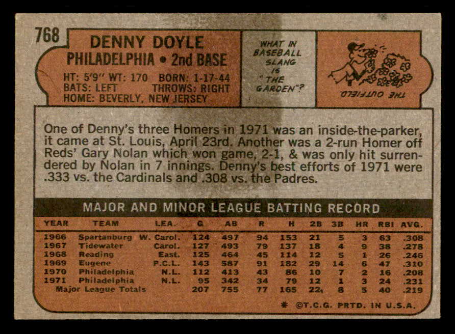 1972 Topps Baseball #768 Denny Doyle Phillies EX-MT 543151