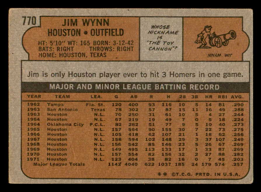 1972 Topps Baseball #770 Jim Wynn Astros VG-EX 543177