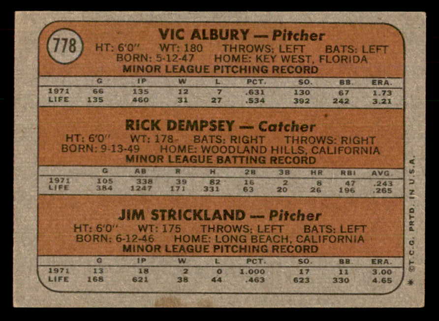 1972 Topps Baseball #778 Rick Dempsey Twins EX-MT 541490