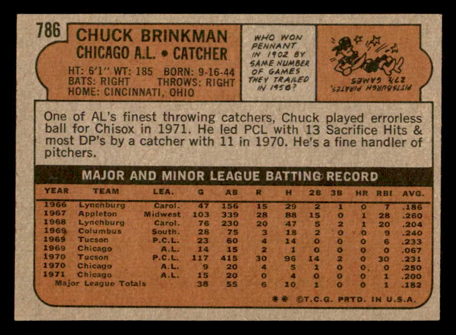 1972 Topps Baseball #786 Chuck Brinkman White Sox VG-EX 543181