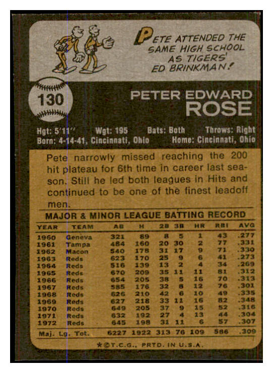 1973 Topps Baseball #130 Pete Rose Reds EX-MT 537729