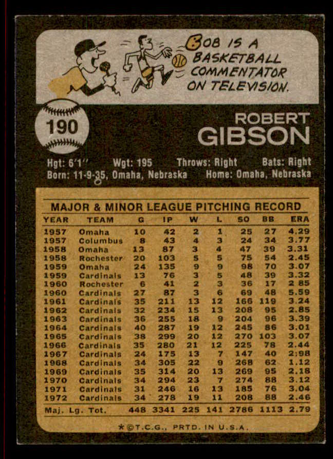 1973 Topps Baseball #190 Bob Gibson Cardinals EX-MT 542277
