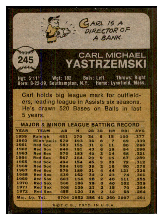 1973 Topps Baseball #245 Carl Yastrzemski Red Sox EX 537686