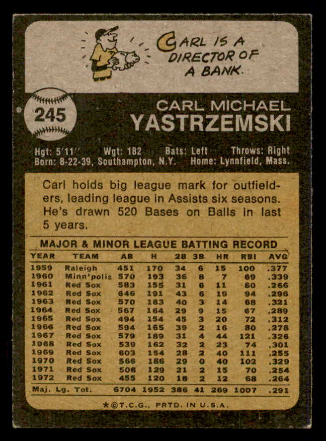 1973 Topps Baseball #245 Carl Yastrzemski Red Sox EX 542320