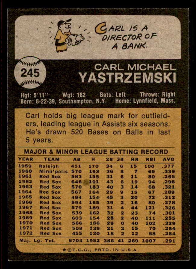 1973 Topps Baseball #245 Carl Yastrzemski Red Sox NR-MT 542215