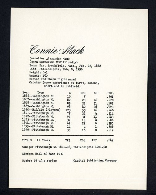 1974 Capital Publishing #056 Connie Mack A's EX-MT 537623