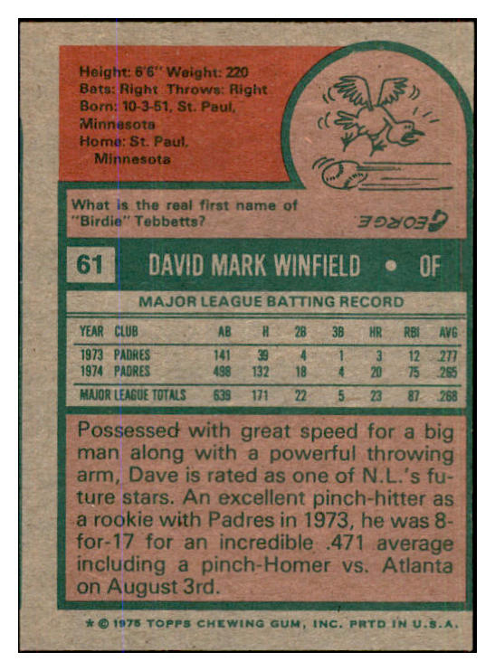 1975 Topps Baseball #061 Dave Winfield Padres EX 537679