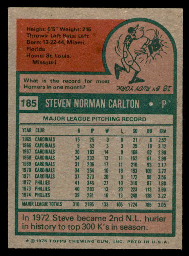 1975 Topps Baseball #185 Steve Carlton Phillies VG-EX 542371