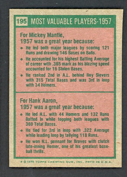 1975 Topps Baseball #195 Mickey Mantle Hank Aaron EX-MT 542258