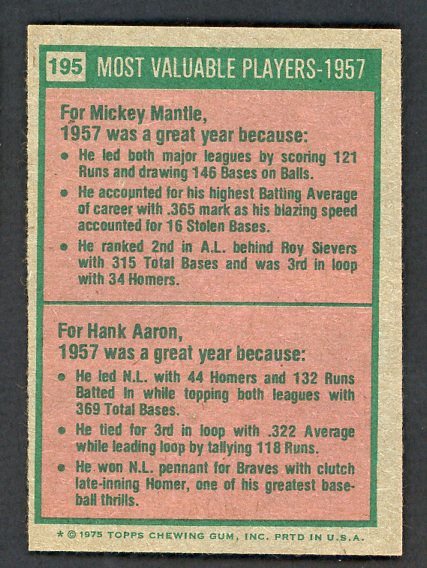 1975 Topps Baseball #195 Mickey Mantle Hank Aaron NR-MT 541578