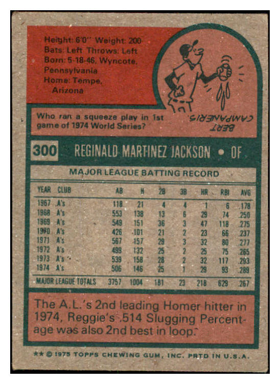 1975 Topps Baseball #300 Reggie Jackson A's VG-EX 527413