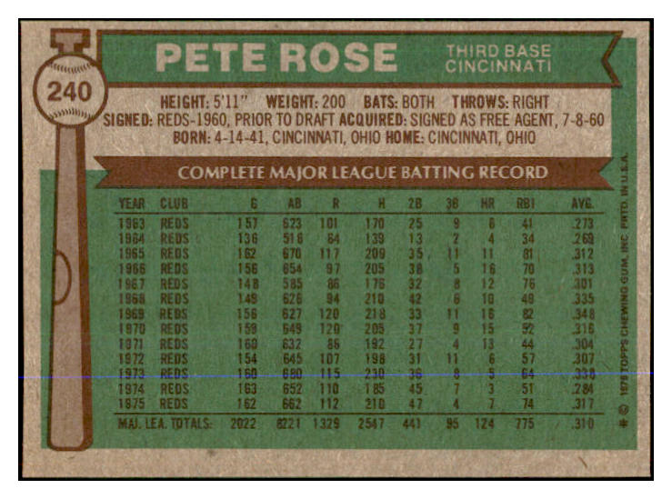 1976 Topps Baseball #240 Pete Rose Reds NR-MT 537703