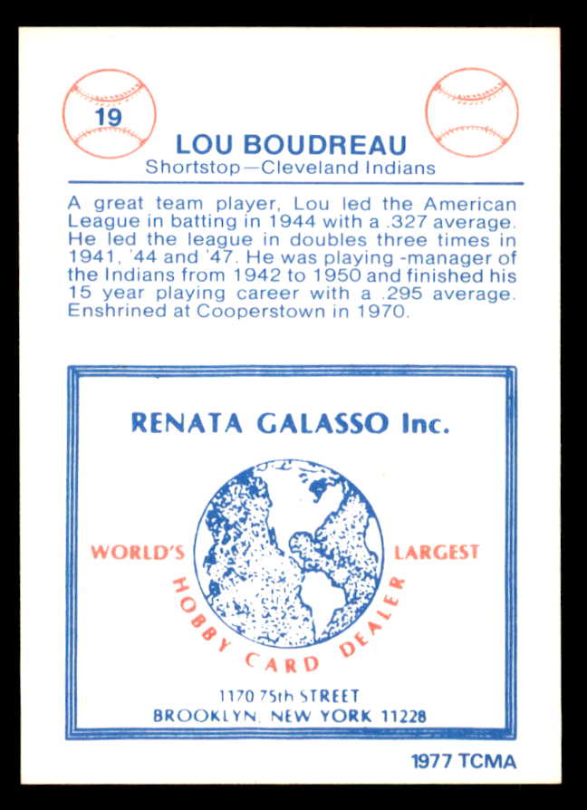 1977 TCMA #019 Lou Boudreau Indians Signed Autographed
