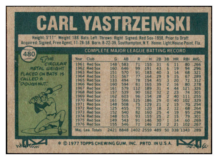 1977 Topps Baseball #480 Carl Yastrzemski Red Sox EX-MT 529002